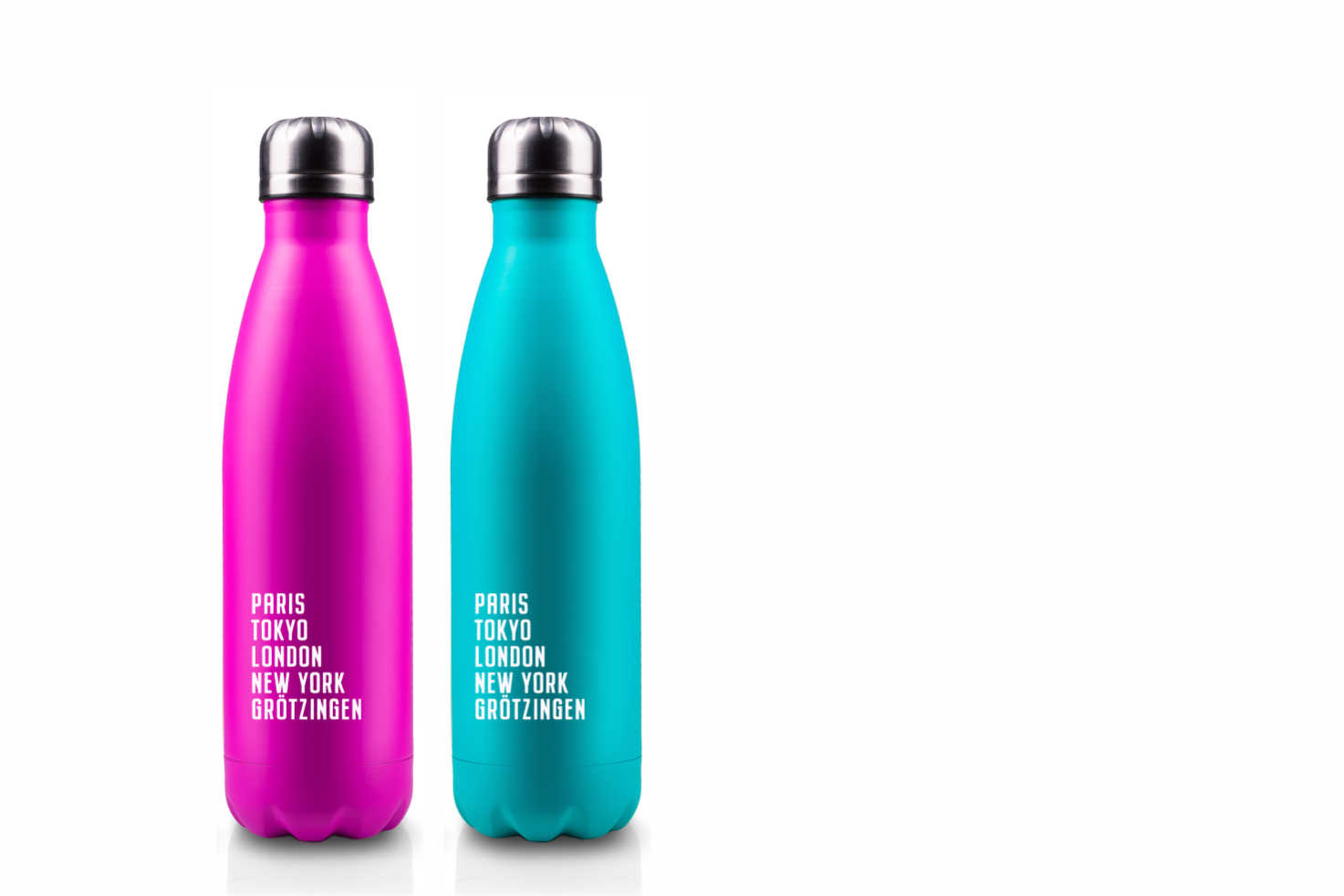 Doppelwandige Thermosflasche in farbiger Beschichtung für kalte & heiße Getränke. Genießen Sie diese auslaufsichere Flasche am Strand, bei der Arbeit oder sonstigen Aktivitäten.